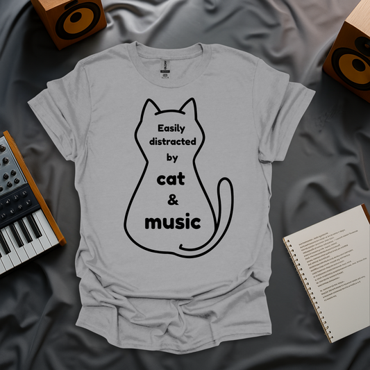 Easily Distracted by Cat and Music T-Shirt